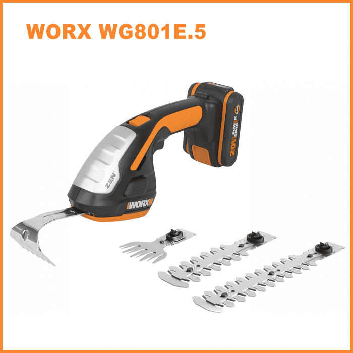 Для несложных работ, когда необходимо подравнять тонкие веточки, листву или срезать сорняки, идеальным помощником для вас станут садовые ножницы для стрижки травы и кустарника WORX WG801E.5, устройство весит меньше 1 кг (без АКБ), обладает низким уровнем шума, оснащен системой быстрой смены насадок. В целях безопасности работы ножницы-кусторез оснащены тормозом двигателя и антиблокировочной системой, срабатывающей при выскальзывании ножниц из рук.