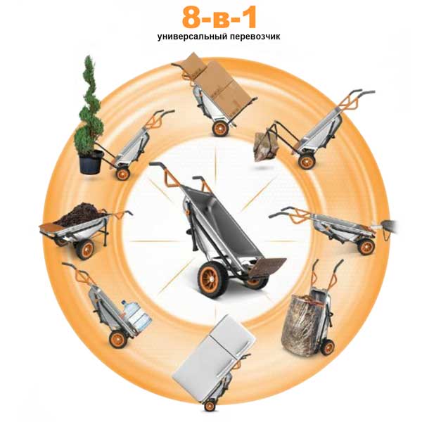 Подробно об особенностях тележки «8-в-1» ВОРКС можно почитать в статье «Садовая тележка Aerocart от WORX».