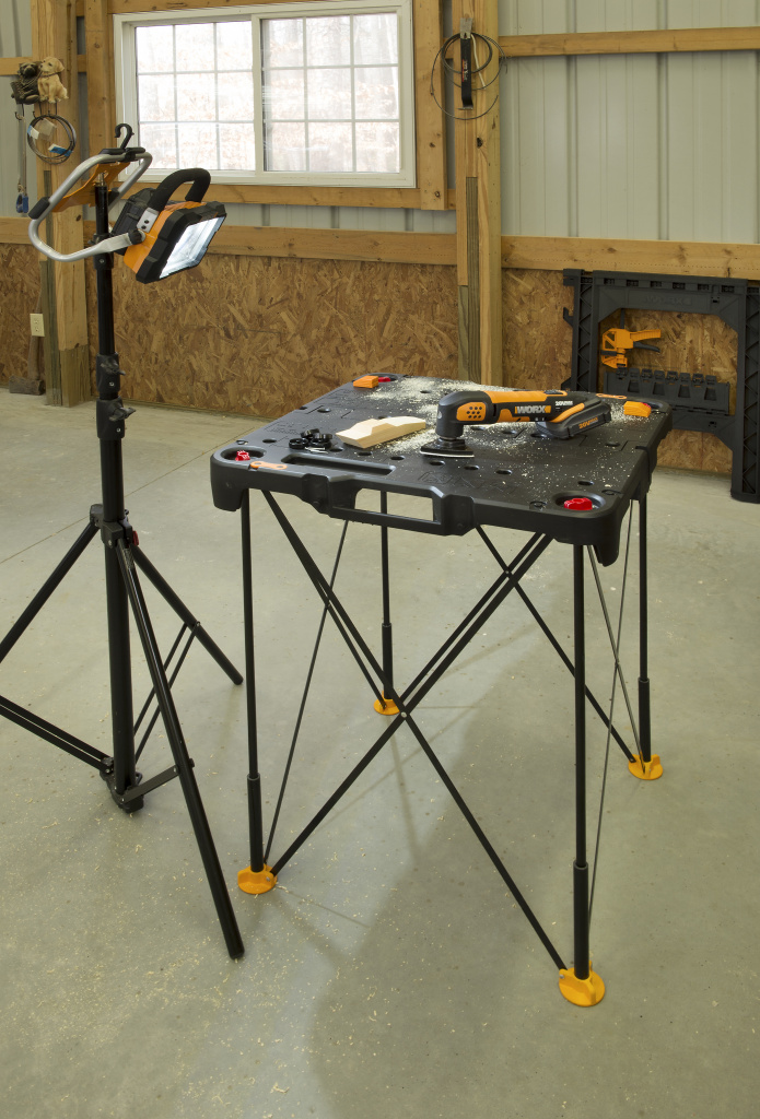 WORX WX066 Sidekick – это универсальный портативный рабочий стол. Складывается в два раза для удобной переноски, для этой цели есть встроенная ручка.