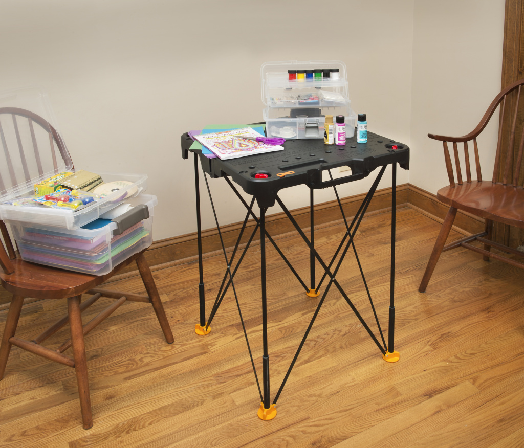 Данную модель можно использовать как рабочий верстак или стол для поделок. Благодаря своему небольшому весу и компактным размерам в сложенном виде, его можно брать на пикник.